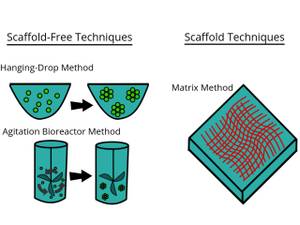 Scaffold free techniques employ another approach independent from the use scaffold. Scaffold-free methods include e.g. the use of low adhesion plates, hanging drop plates, micropatterned surfaces, and rotating bioreactors, magnetic levitation, and magnetic 3D bioprinting.